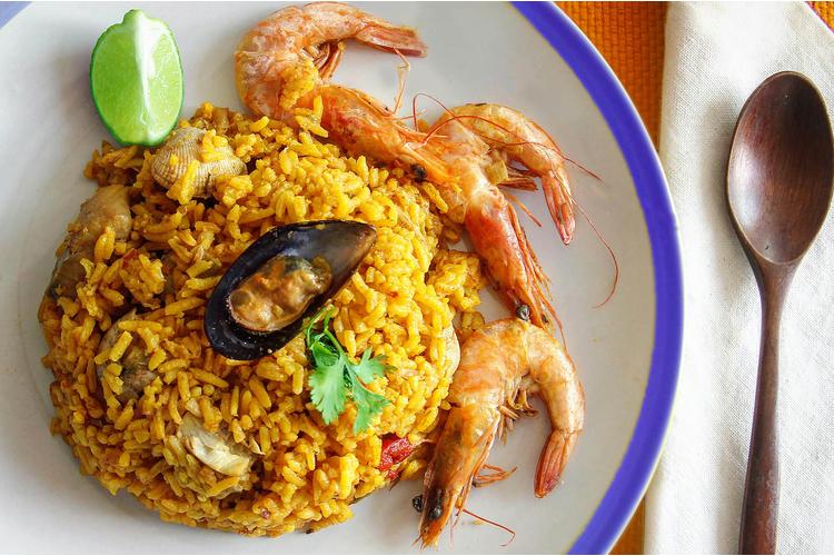 Alternativ vegetarischer Hauptgang: Aromatisches Reisgericht mit mediterranem Grillgemüse.