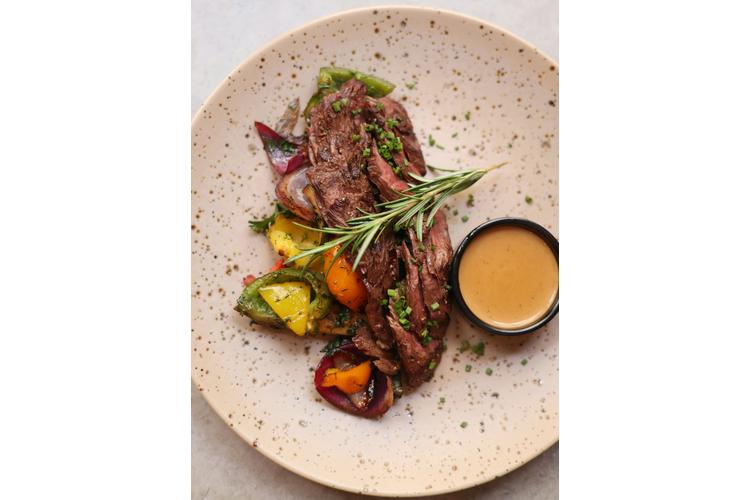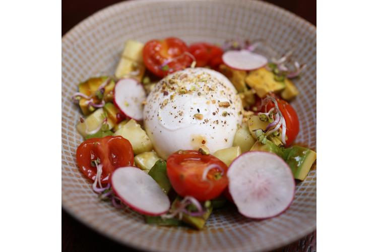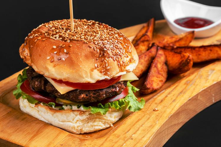Vegetarischer Burger Variante mit gegrilltem cremigem Ziegenkäse, Avocadocreme und karamellisierten Zwiebeln möglich. Auf Wunsch servieren wir es auch als schlüsselfertiges Menü.